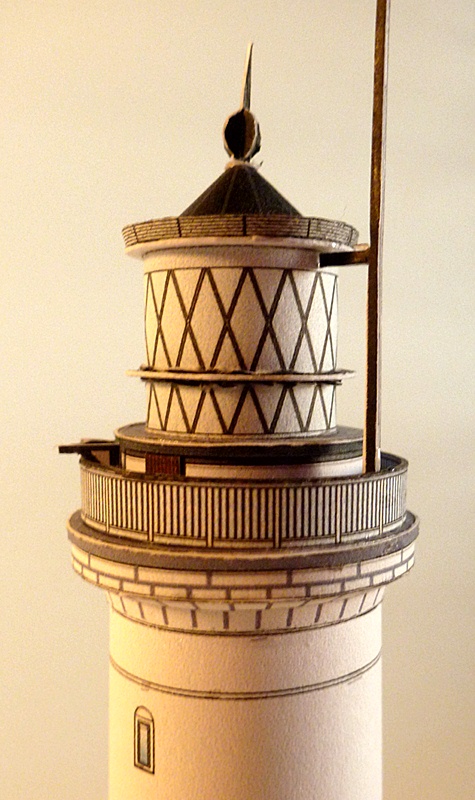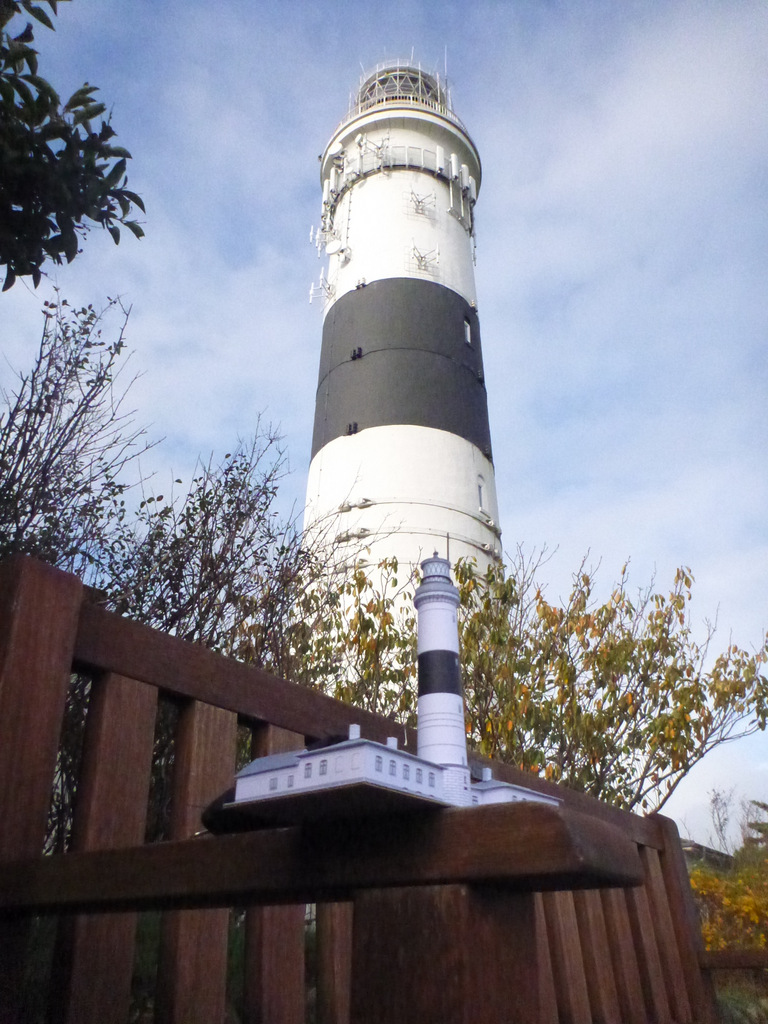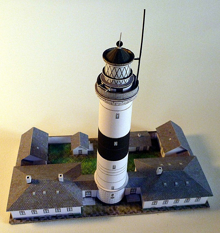 Der Leuchtturm zusammen mit dem Ensemble von Wärterhäusern ergibt ein schönes kleines Modell in 1:250. In 1:100 wird es leider zu groß. Der Schwierigkeitsgrad liegt zwischen mittel und hoch: Es gibt einen zweiten Turmschaft mit aufgedruckten Antennen, so dass man die vielen Antennen die der Turm heute trägt nicht ausschneiden muß.