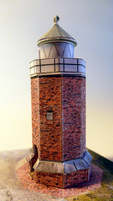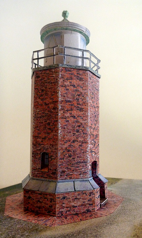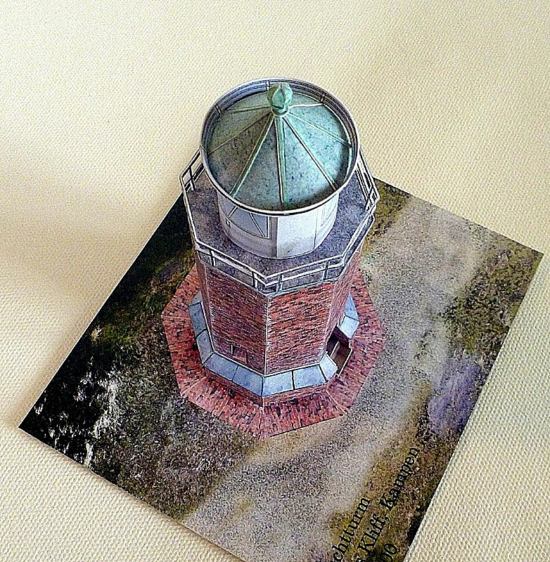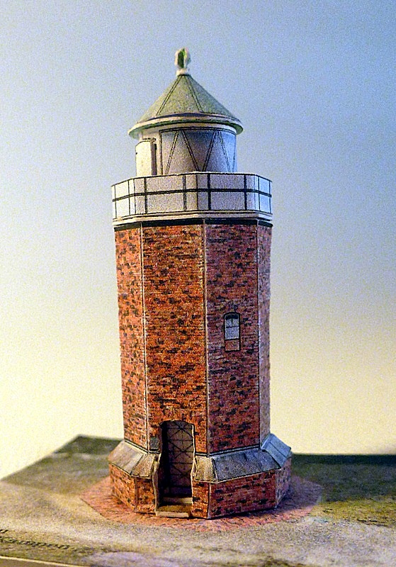 Ein hübsches kleines Modell vom kleinen Kampener Leuchtturm. Das Modell wartet mit einer sehr schönen Ziegelgrafik auf und ist in der 1:100 Version auch von weniger erfahrenen Modellbauern zu bewältigen. Das 1:250 Modell ist naturgemäß schwieriger zu bauen. Wie bei den meisten anderen Leuchttürmen sind zurückgesetzte Fenster möglich, aber nicht zwingend notwendig zu bauen.