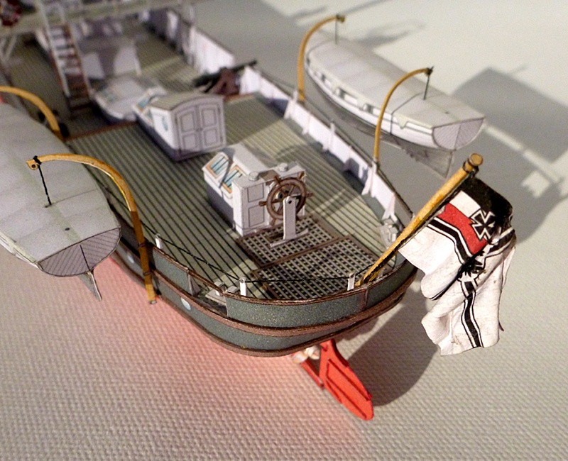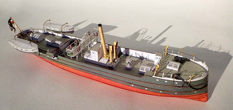 Beide Modelle können wahlweise mit oder ohne Unterwasserschiff gebaut werden. Das Unterwasserschiff ist im 1:250 Bogen enthalten, für das 1:100 Modell kann es dazubestellt werden.