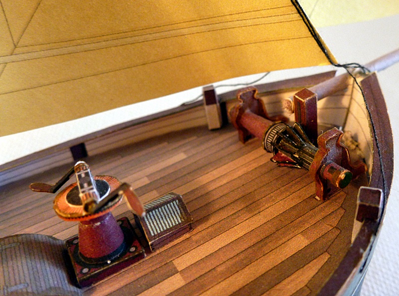 Ein schönes Segelschiffmodell mit mittlerem Schwierigkeitsgrad. Die Maria ist als Vollrumpfmodell konzipiert, kann aber auch als Wasserlinienmodell gebaut werden. Für die Verstärkung der Spanten braucht man zusätzlich noch etwas Graupappe (0,8 - 1 mm stark). Die Segel sind aus dünnem Papier und beidseitig bedruckt. Einige Details, wie z.B. die Fischbünn können eingebaut oder zur Vereinfachung weggelassen werden.