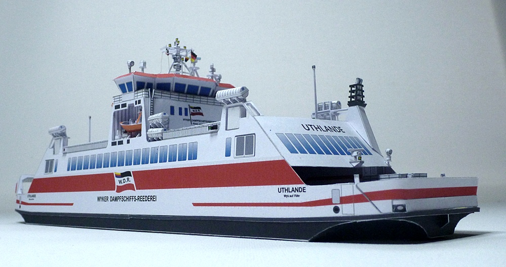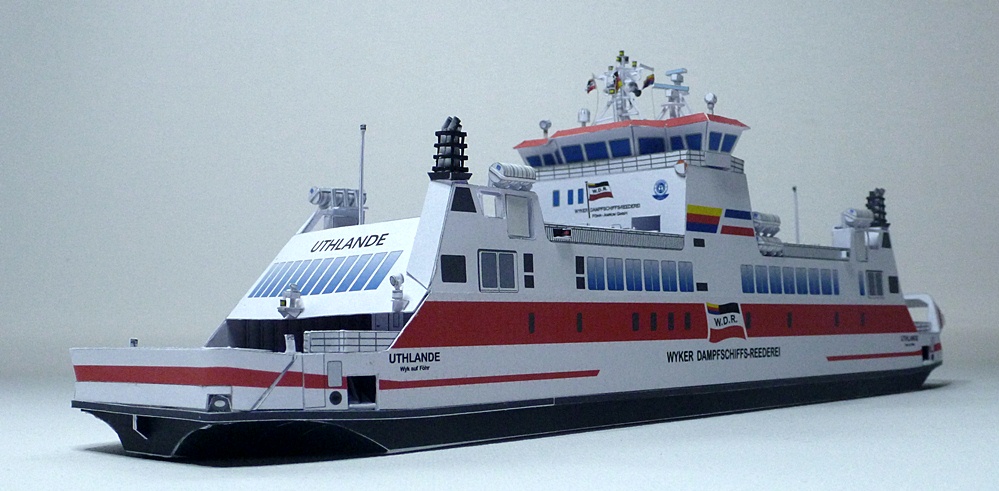 Die Uthlande ist eine kombinierte Auto- und Personenfähre und die erste Doppelendfähre der der Wyker Dampfschiffs-Reederei Föhr-Amrum GmbH (W.D.R.). Sie war außerdem der erste Fährschiffsneubau für die W.D.R. seit 1995. Gebaut wurde die Uthlande 2009/2010 auf der Sietas-Werft in Hamburg-Neuenfelde. Die Indienststellung war am 15. Juni 2010 in Wyk auf Föhr, seitdem verkehrt sie zwischen Dagebüll, Wyk auf Föhr und Wittdün auf Amrum. Sie ist das 5. Schiff mit diesem Namen bei der WDR, und ersetzt die alte Uthlande von 1980. Im Dezember 2011 wurde das fast baugleiche Schwesterschiff Schleswig-Holstein in Dienst gestellt. Die Kapazität der Uthlande ist bei fast gleicher Größe gegenüber den älteren Fähren deutlich erhöht. So hat die Fähre fünf statt vier Spuren zum Transport von Kraftfahrzeugen, außerdem hat sie ein größeres Sonnendeck. Dieses wird zwar durch das große Ruderhaus geteilt und eine Hälfte des Decks liegt teilweise im Schatten, jedoch spendet der Aufbau auch einen gewissen Windschatten. Eine große Veränderung duch die neuen Schiffe war, dass das Ein- und Ausschiffen der Fahrgäste seit dem nicht mehr über das Fahrzeugdeck läuft, sondern über barrierefreie Fußgängerrampen. Diese Rampen mussten zunächst in den Häfen gebaut werden, sie werden aber nun auch für die beiden älteren Fähren Nordfriesland und Rungholt verwendet, und tragen sehr zum Komfort der Fahrgäste bei. Das wirklich Besondere an der Uthlande ist aber ihr innovatives Design: Zunächst einmal ist die Fähre ein echter Doppelender, d.h. es gibt keine Unterschiede zwischen Bug und Heck, bzw. eine bevorzugte Fahrtrichtung, so dass sie nicht mehr im Hafen drehen muss. Der Voith-Schneider-Antrieb mit 4 unabhängigen Motor/Propeller-Einheiten verleiht ihr sehr gute Manövriereigenschaften, so kann die Uthlande z.B. auch seitwärts fahren oder auf der Stelle drehen. Beim Design der Fähre, das komplett in den Händen der Reederei lag, wurde sehr viel Wert auf hohe Effizienz und Umweltschutz gelegt. So braucht die Uthlande z.B. kein extra Ballastwasser, da ihre Bunkertanks für den Trimm ausreichen. Die älteren Fähren benötigen eine Ballastmasse von ca.100 Tonnen. Außerdem wurde durch die Verwendung von Spezialstahl der komplette Rumpf leichter, was Tiefgang und damit den Treibstoffverbrauch senkt. Der geringe Tiefgang der Fähre trägt außerdem sehr zur Fahrplanstabilität bei, so kann die Uthlande auch bei Niedrigwasser ihre Kapazität ausnutzen. Die Reederei verzichtet in ihrer gesamten Flotte schon seit sehr vielen Jahren auf die Verwendung von schädlichem weil schwefelhaltigen Schweröl, und verwendet teureren Diesel zugunsten der geringeren Emissionen ihrer Schiffe. Im April 2011 bekam die Uthlande schon den Ship Pax Award für ihr innovatives Konzept. 2013 bekamen die beiden Fähren Uthlande und Schleswig-Holstein dann den Blauen Umweltengel für umweltfreundliches Schiffsdesign verliehen, den sie seitdem als großes Logo am Aufbau tragen dürfen. Diese Kategorie des Blauen Engels gibt es erst seit 2010, und umfasst unter Anderem Bereiche wie: Korrosionsschutzverfahren am Rumpf ohne Zinkanoden, spezieller Auflagen für die Abfall- und Abwasserbehandlung und die Behandlung von Bilgenwasser, den Schutz der Treibstofftanks durch eine Doppelhülle, eine erhebliche Reduktion der Stickoxidemissionen und vieles mehr. Über die gesetzlichen Vorgaben geht dieser Katalog weit hinaus. Ziel der neuen Umweltzeichenkategorie ist es, die Reedereien "für die Umsetzung möglichst vieler Umweltinnovationen zu gewinnen und damit bestehendes technisches Potential zum Schutz der Umwelt bestmöglich zu erschließen." Im Fall der WDR und der Uthlande hat das sogar schon im Vorlauf funktioniert: Obwohl der Kriterienkatalog noch gar nicht vorlag als die Uthlande geplant wurde, konnte sie ohne große Anpassungen für den Umweltengel zertifiziert werden.