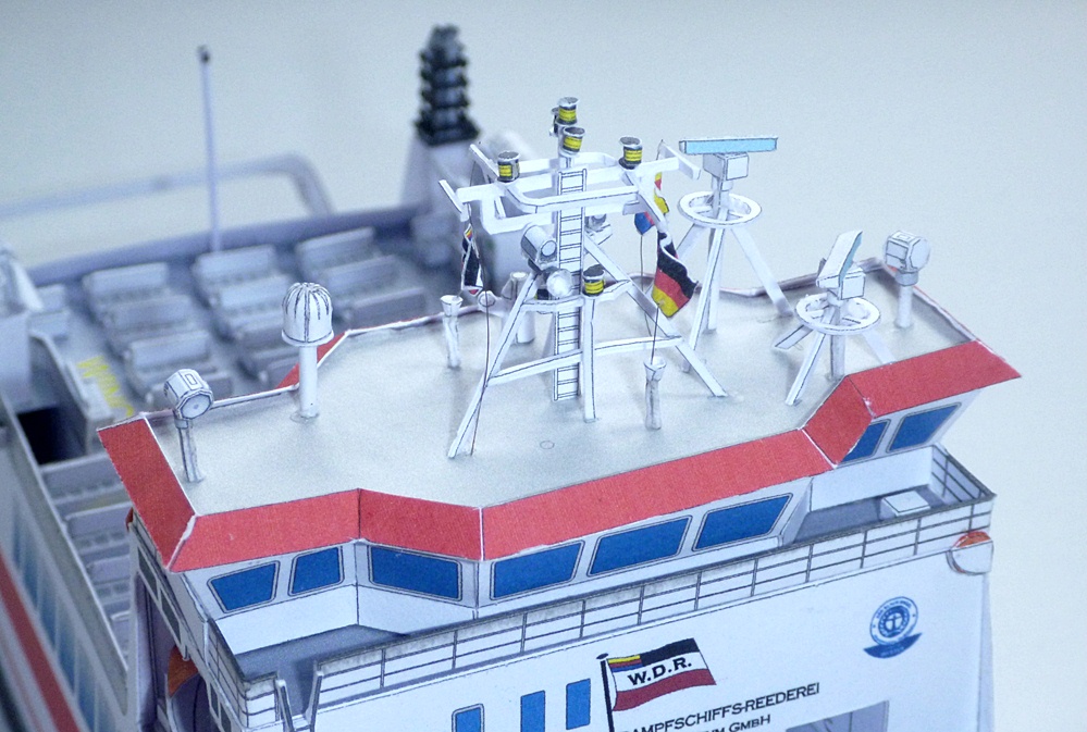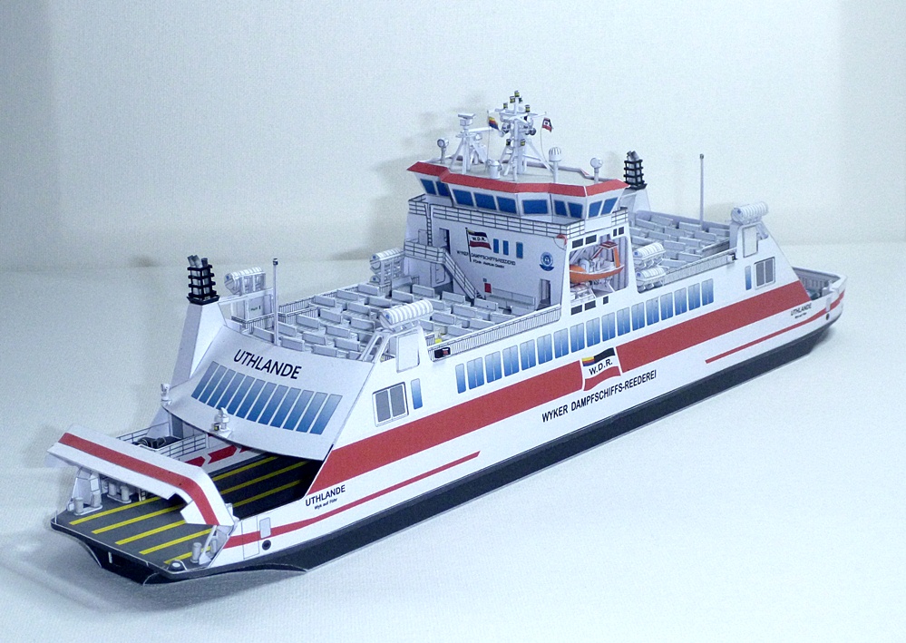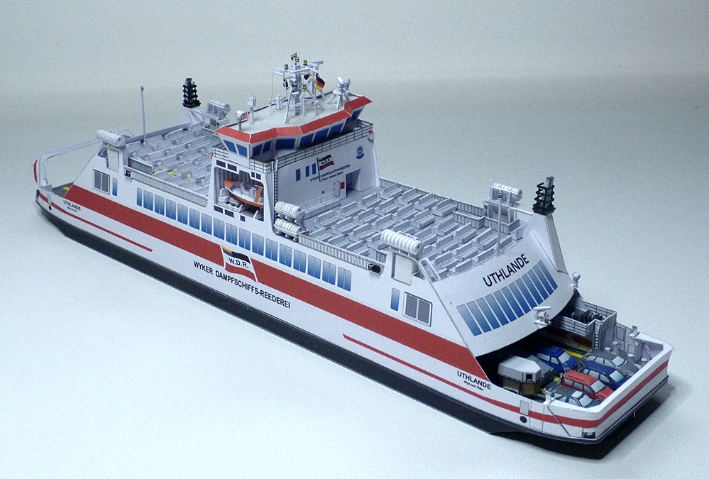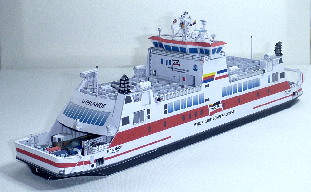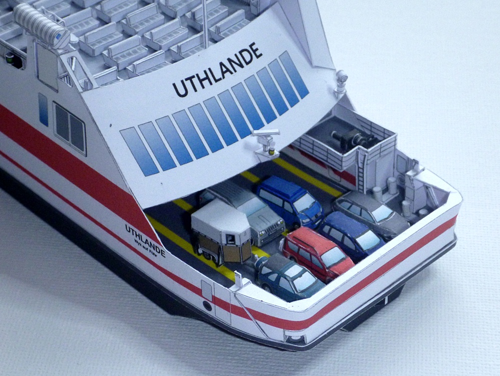 Ein sehr schön detaillierter Bogen einer modernen Fähre. Für Anfänger ist dieses Modell eher nicht geeignet, da sehr viele Kleinteile zu verarbeiten sind. Als kleine Besonderheit ist die Brückeneinrichtung im Bogen enthalten, wer möchte kann also die Brückenfenster verglasen und die Brücke mit Steuerstand, Schreibtisch und Kaffeeküche bauen! Passende Fahrzeuge zur Uthlande gibt es als Download.